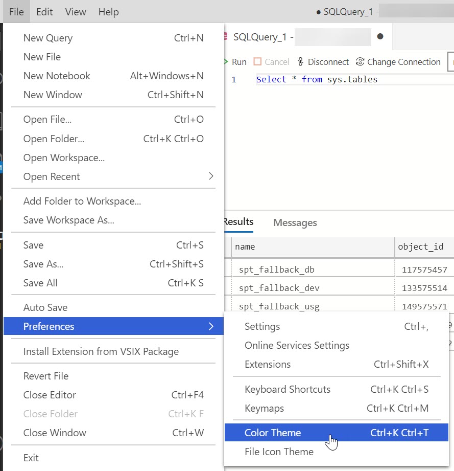 Once the color theme is selected, we will be able to select the theme “Dark Azure Data Studio“.