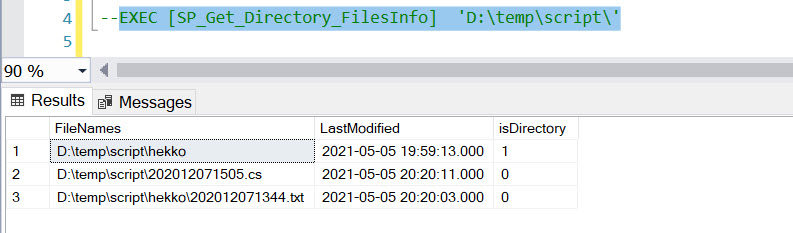 --EXEC [SP_Get_Directory_FilesInfo] 'D:\temp\scripts\'