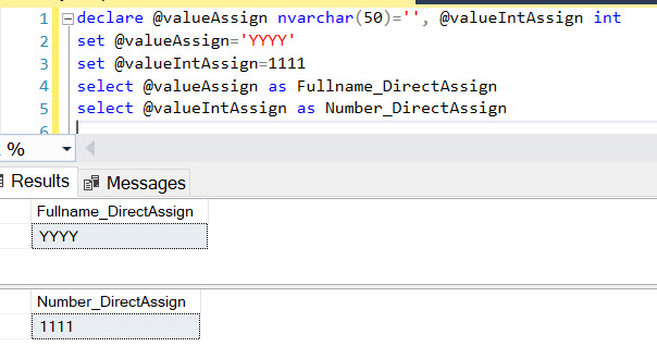 select @valueAssign as Fullname_DirectAssign
