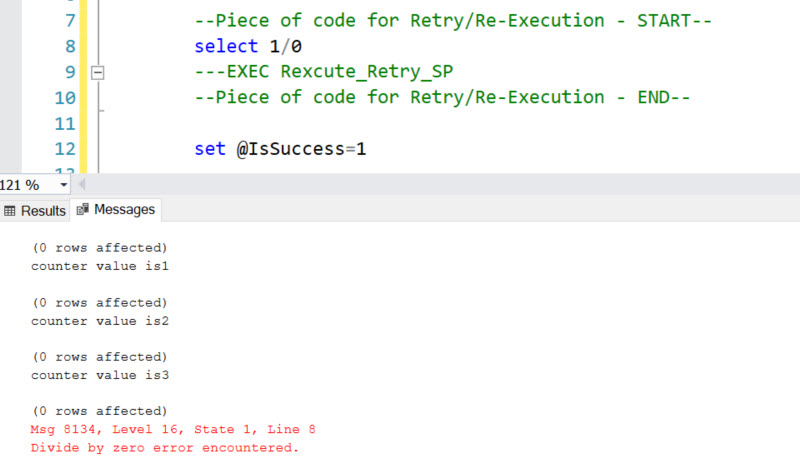 Fig 2:- SQL Code retries for 3 times and exited with Error Message in Final Try
