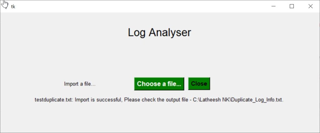 label3 = tk.Label(root, text=entries.name + ": Import is successful, Please check the output file - "+ fw.name + ".")