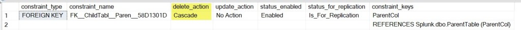Now, we can see the DELETE operation is successful and the Delete action on the table has been changed to Cascade as below.