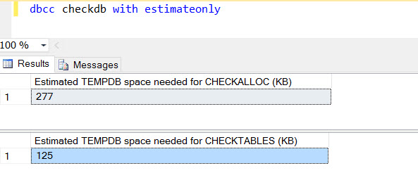 DBCC CHECKDB/CHECKALLOC are using TEMPDB space for creating internal database snapshot to perform the operation. This is to efficiently avoid the locking behavior on database to obtain the consistency check. DBCC CHECKDB and CHECKALLOC has an option to estimate the usage of TEMPDB by providing ESTIMATEONLY option as below. Please note, this is an estimated value, may not be the correct one, however, this can be a good indication to estimate the space required for the operation. This can be used to make sure the TEMPDB drive has enough space to run on DBCC operations for large databases.