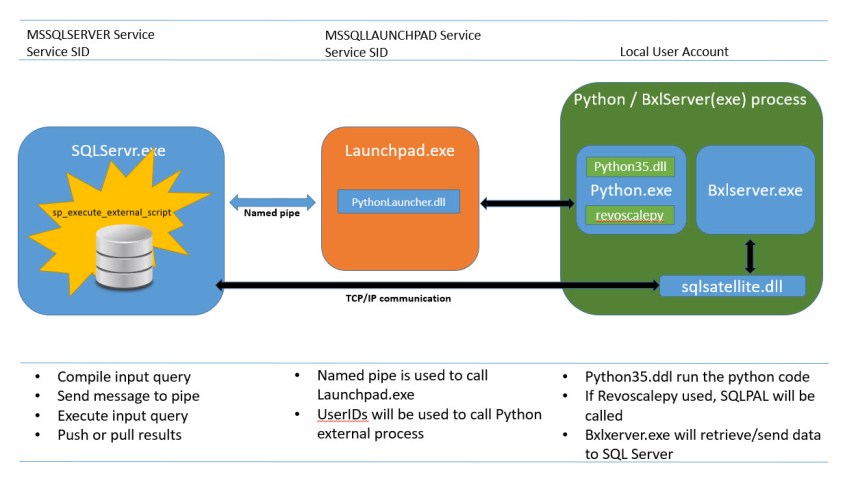 Launchpad is an integral part of Machine Learning Services execution meaning to executing the Python or R code in SQL Server. The below diagram explains the usage of Launchpad service.